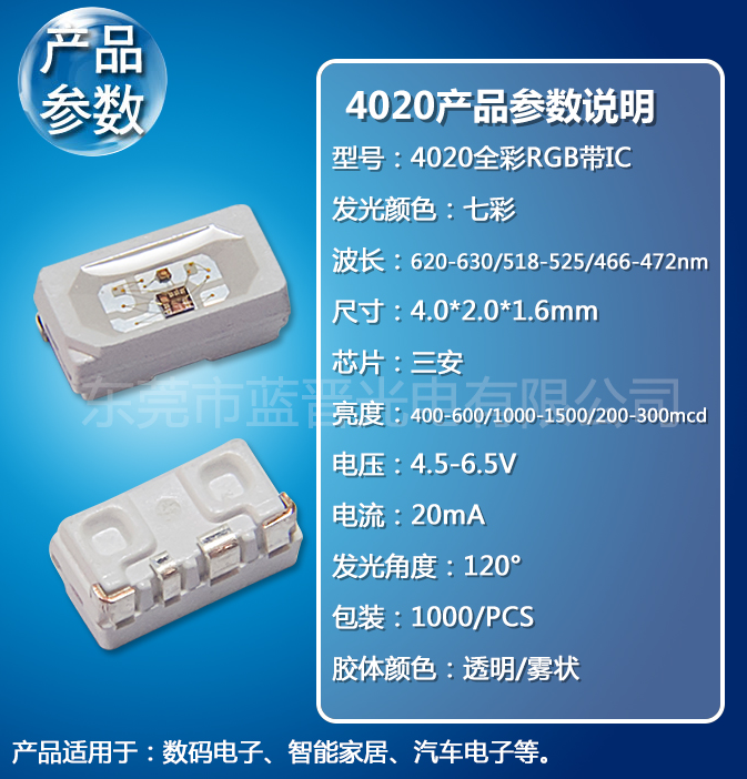 4020全彩RGB帶IC智能音響LED貼片燈珠廠家生產(chǎn),東莞藍晉光電廠家批量生產(chǎn),價格實惠。