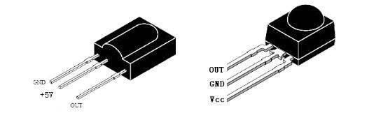 一般的紅外接收頭有三個引腳,分別是:VCC電源正極、GND電源負(fù)極、OUT輸出端。