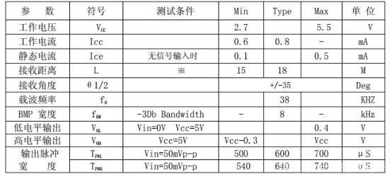 紅外接收頭主要參數(shù)有工作電流/電壓、接收距離、接收角度等