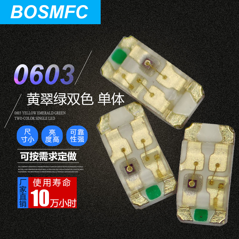 東莞市藍晉光電廠家專業(yè)生產(chǎn)0603黃翠綠雙色單體LED燈珠,可按需求定做。有需要的朋友可以聯(lián)系我們官方在線客服人員哦。東莞市藍晉光電有限公司作為綠色照明光源的創(chuàng)導者,擁有16年的貼片LED研發(fā)生產(chǎn)經(jīng)驗,秉承完美品質的理念,精益求精、在封裝工藝上采用高端原材料、嚴格管控制程、強化信賴性實施,全方面模擬客戶使用條件進行實驗,力爭在同等價位,做出品質。