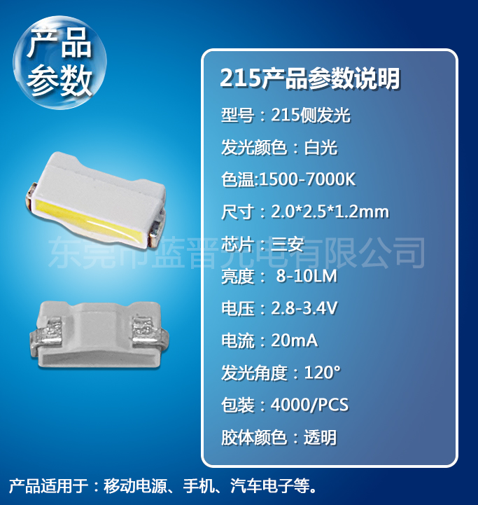 215側(cè)發(fā)白光LED燈珠車載LED貼片