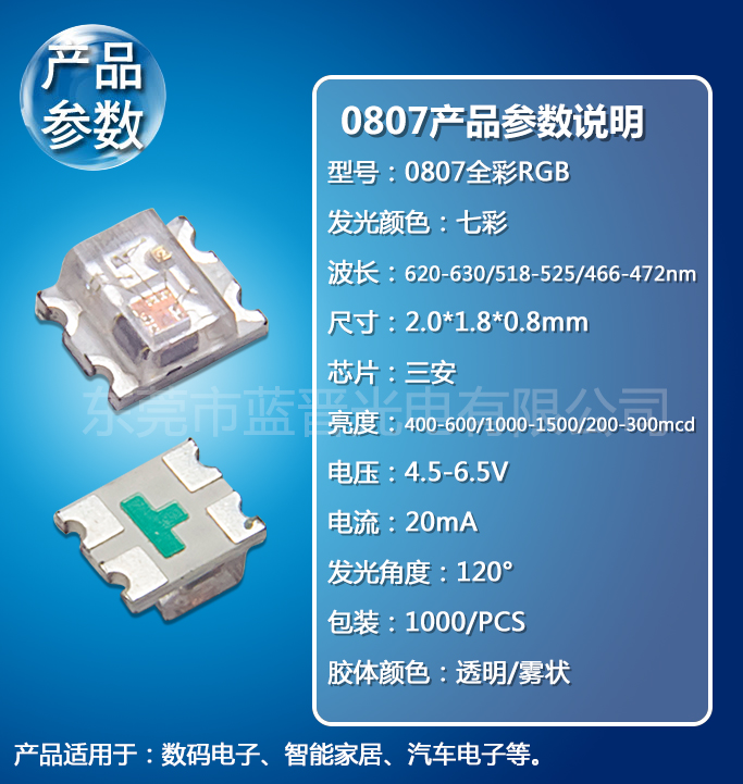 0807全彩RGB內(nèi)置IC汽車儀表LED貼片燈珠