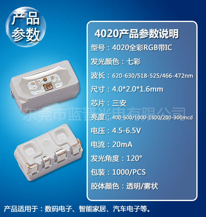 4020全彩RGB帶IC智能音響LED貼片燈珠